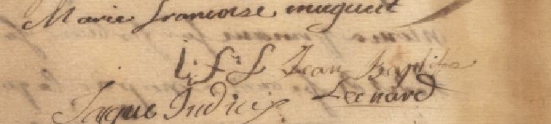 As mentioned above, the 1721 ship list of "La Venus" shows that Jean Baptiste Leonard arrived with a wife and four children. One or more of the following individuals might have been the remaining two children but supporting documentation has not been found to date. It is also possible that one or more of these individuals were children of Leonard and his second wife, Anne Coudray, or that they were not related to this Leonard family at all. However, there is enough info existing for them to indicate that we do not want to ignore their presence in Louisiane. .... Special thanks to Glen Saucier for researching and providing this information. 1. Marie Anne Leonard, wife of Jacques Livet - He was a resident of Gentilly. However, no docs have been found which provide the parentage or age of Marie Anne Leonard. The couple did have a child, however, in 1733 (Jacques Georges Livet) who was baptized at SLC. A succession document was found for her dated 1748 (http://www.lacolonialdocs.org/document/8136) although she was deceased by 1739. The 1726 Census places a "Linet" and his wife at Gentilly. The 1727 Census lists a "Rivit" (who might be the same person) with a wife and two children. In addition to Jacques George, there other children were: Isabelle/Élizabeth, and Marie Jeanne/Françoise. 2. Marie Jeanne Agnès Leonard, wife of Barthelemy Garret/Garelle/Garot - Garret/Garelle/Garot was deceased by 1762. In Barthelemy's 2nd marriage in 1762, his deceased wife was identified as Jeanne Agnès Leonard. She was first married to Pierre Sauvage and had (at least) three children with him. 3. Leonard of English Turn - He requested a negro at English Turn in 1726, documented regarding the escape of a negro in 1743 (as well as the probable murder of Sr. Corbin), and he was enumerated in an area adjacent to English Turn in 1766 (with a wife). In 1731, he was living next door or very close to Jacques Livet, Livet's wife and 4 children (along the Mississippi River). 4. There was a "Louis Leonnard" mentioned in two documents dated 27 February 1727 at New Orleans in which he is described as a voyageur who was testifying in a civil case. According to one of the documents, he was 26 years old at the time (http://www.lacolonialdocs.org/document/1018 ..... http://www.lacolonialdocs.org/document/1019)It is possible that these documents are a reference to same person described in #3 above as 'Leonard of English Turn'. |